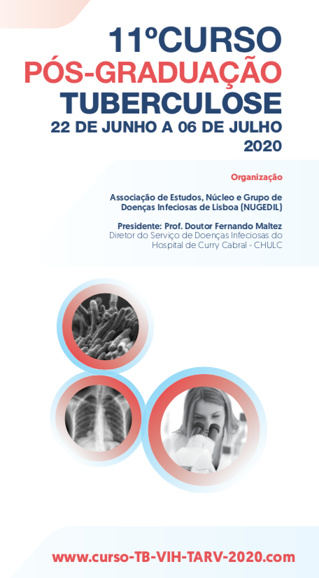 A NUGEDIL - Associação estudos, núcleo e grupo de doenças infeciosas de Lisboa com o patrocínio científico da APECS, vai realizar entre 22 de junho e 22 de julho de 2020, o 11º Curso de Pós-Graduação Tuberculose | 8º Curso de Pós-Graduação em Infeção por VIH e Terapêutica Antirretrovírica, em Lisboa, no Serviço de Doenças Infeciosas do Hospital de Curry Cabral - CHULC.